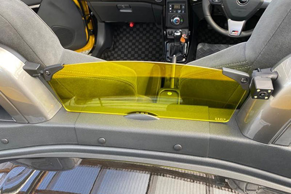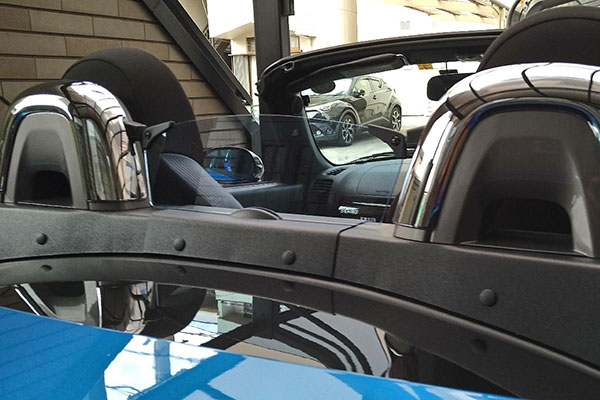 ウィンドウディフレクターはオープンカーのシートの間に付いているもので、風の巻き込みによる後方からの風を防ぐ目的があります。