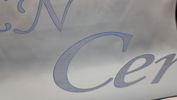 レーザーで0.数mmの間隔で削りだしているため、深い浅いがどうしても出てしまいます。その為この様な模様が出てしまう事がございます。