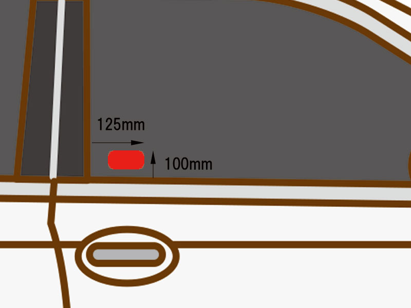 運転席、助手席のウィンドウに貼る場合は下図の範囲内に貼ってください。フロントガラス除く他のウィンドウへの貼り付けは大丈夫です。